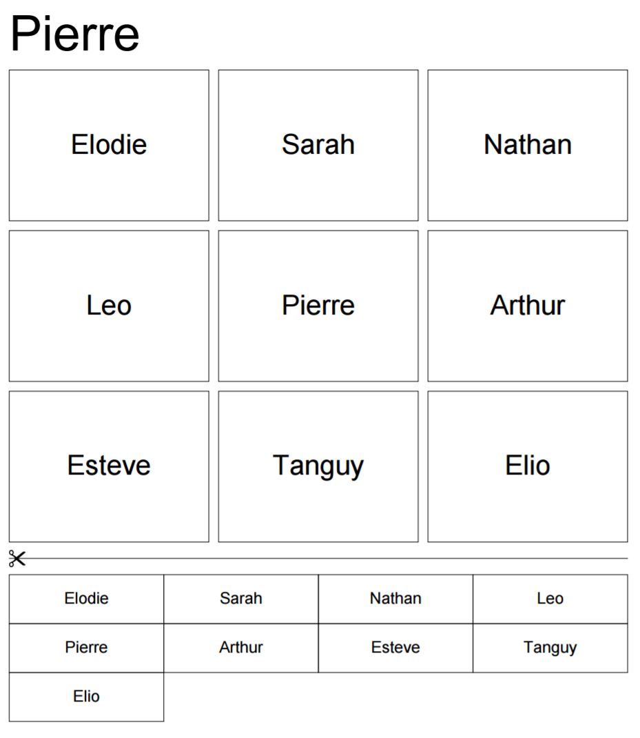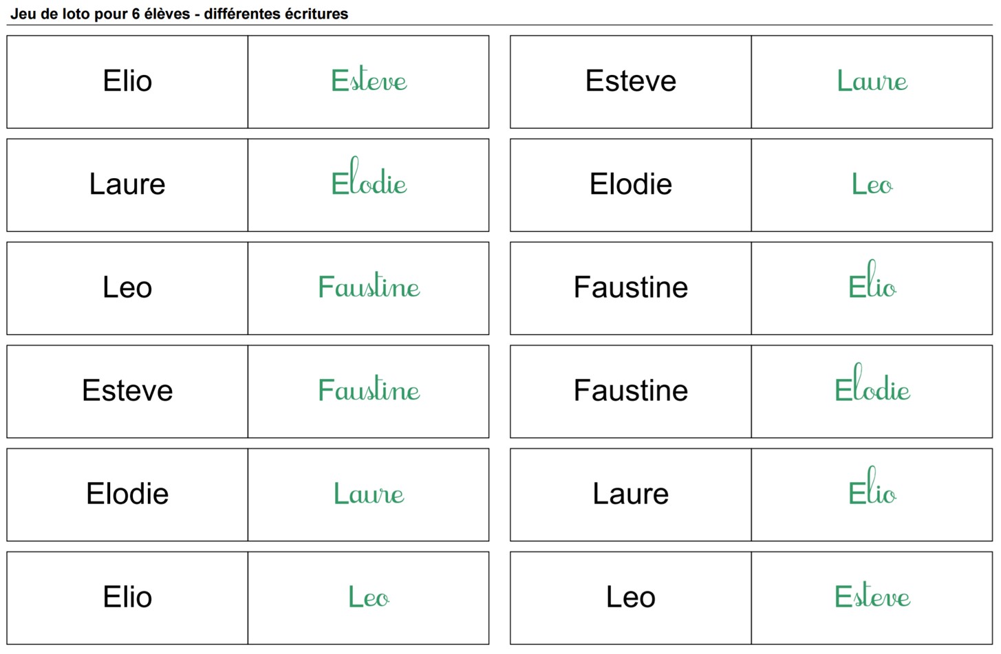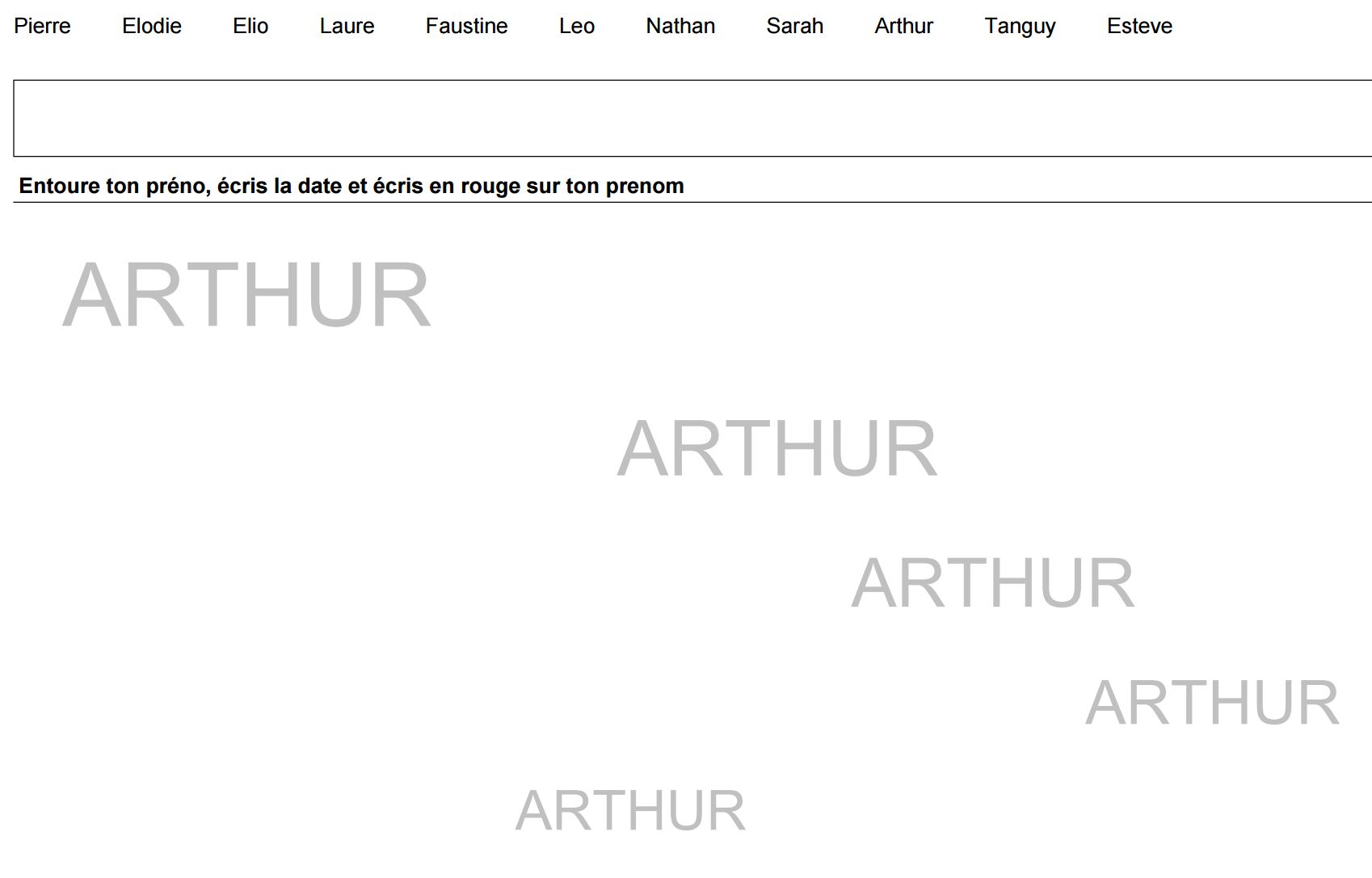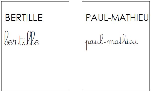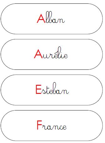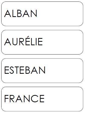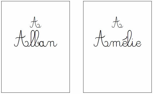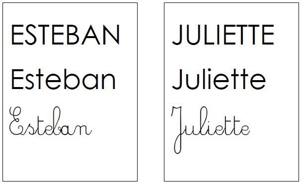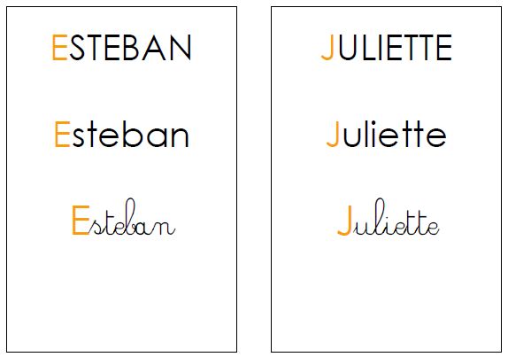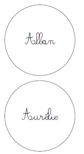 Imprimez des étiquettes de différents formats et de différentes formes, en noir & blanc ou en couleurs, pour votre classe entière ou un groupe en particulier. Vous pouvez changer la typographie, la taille et l'emplacement du prénom.