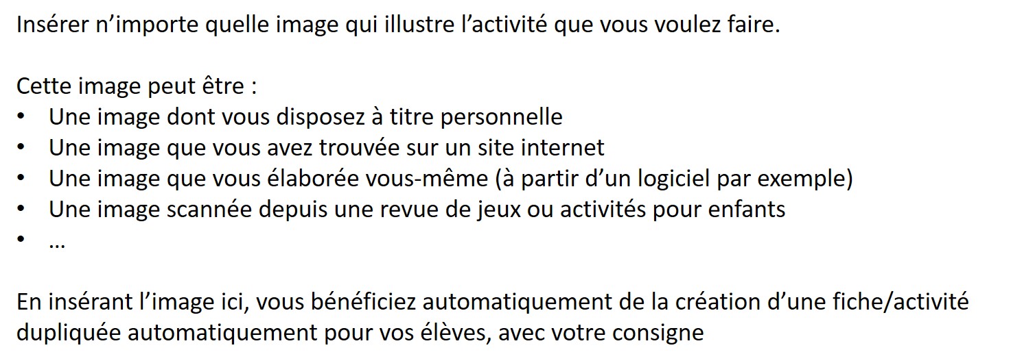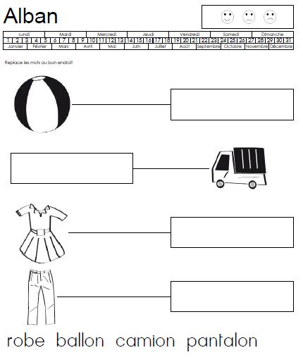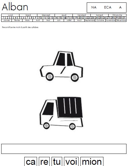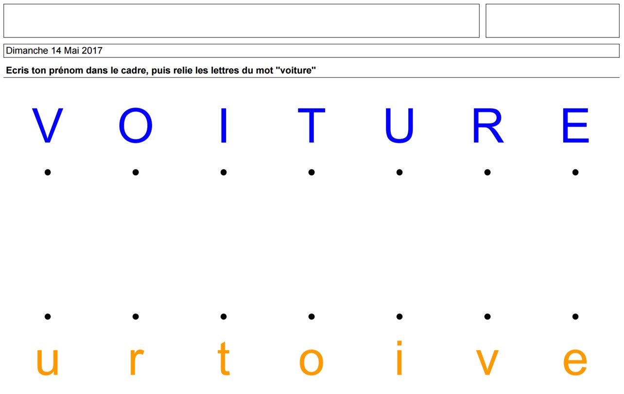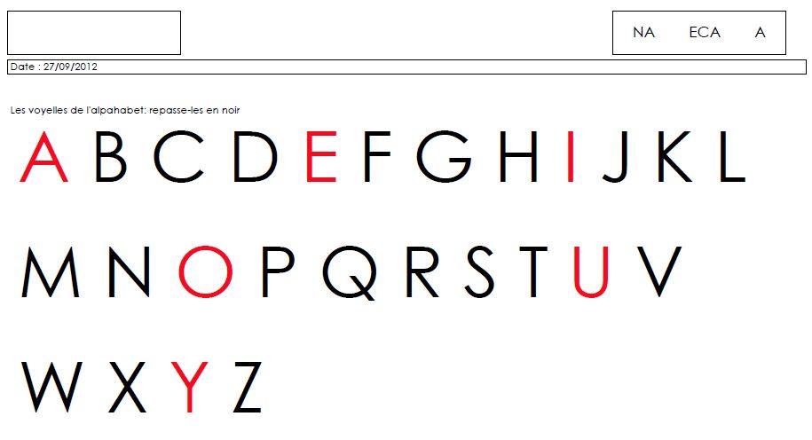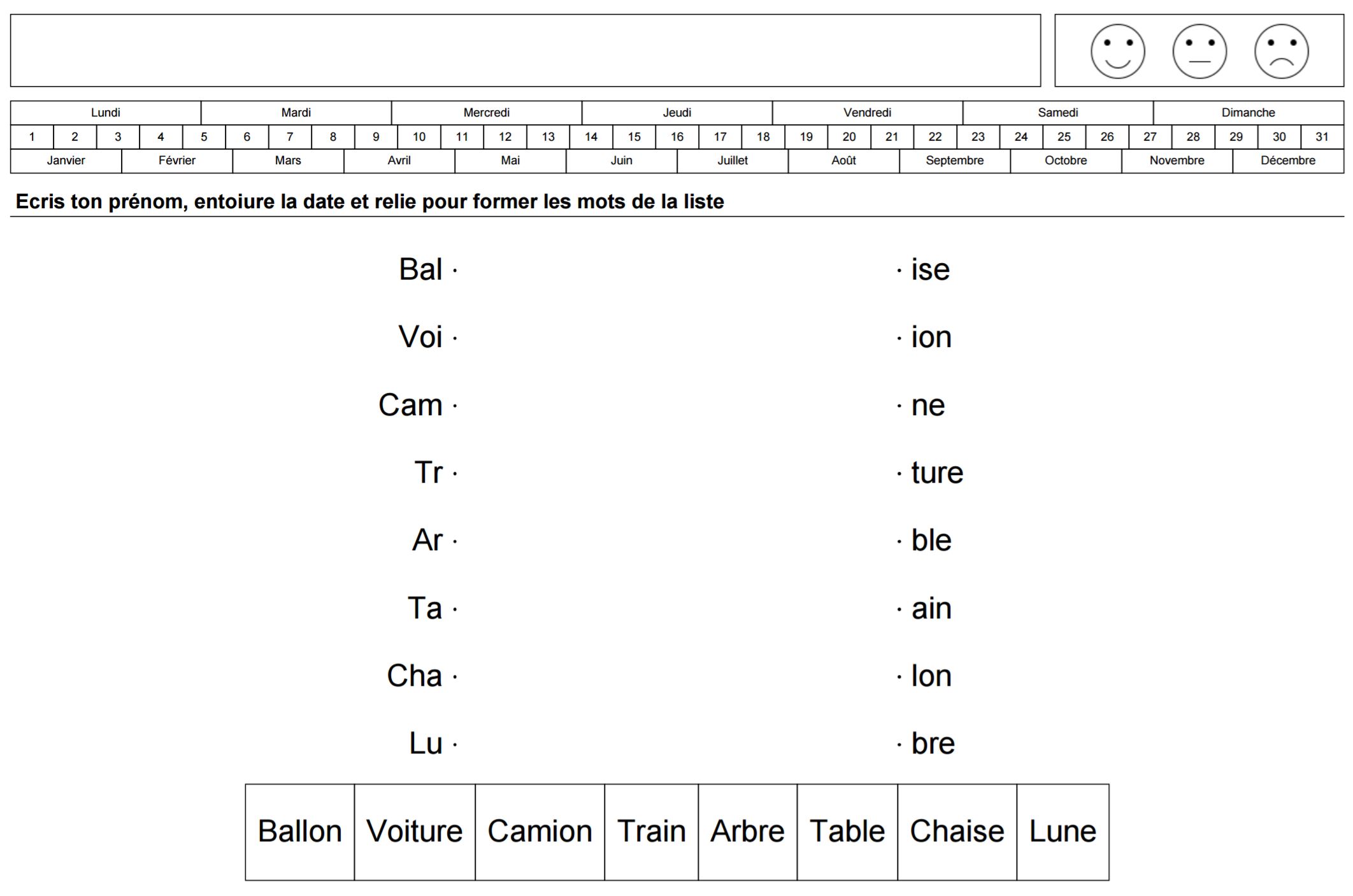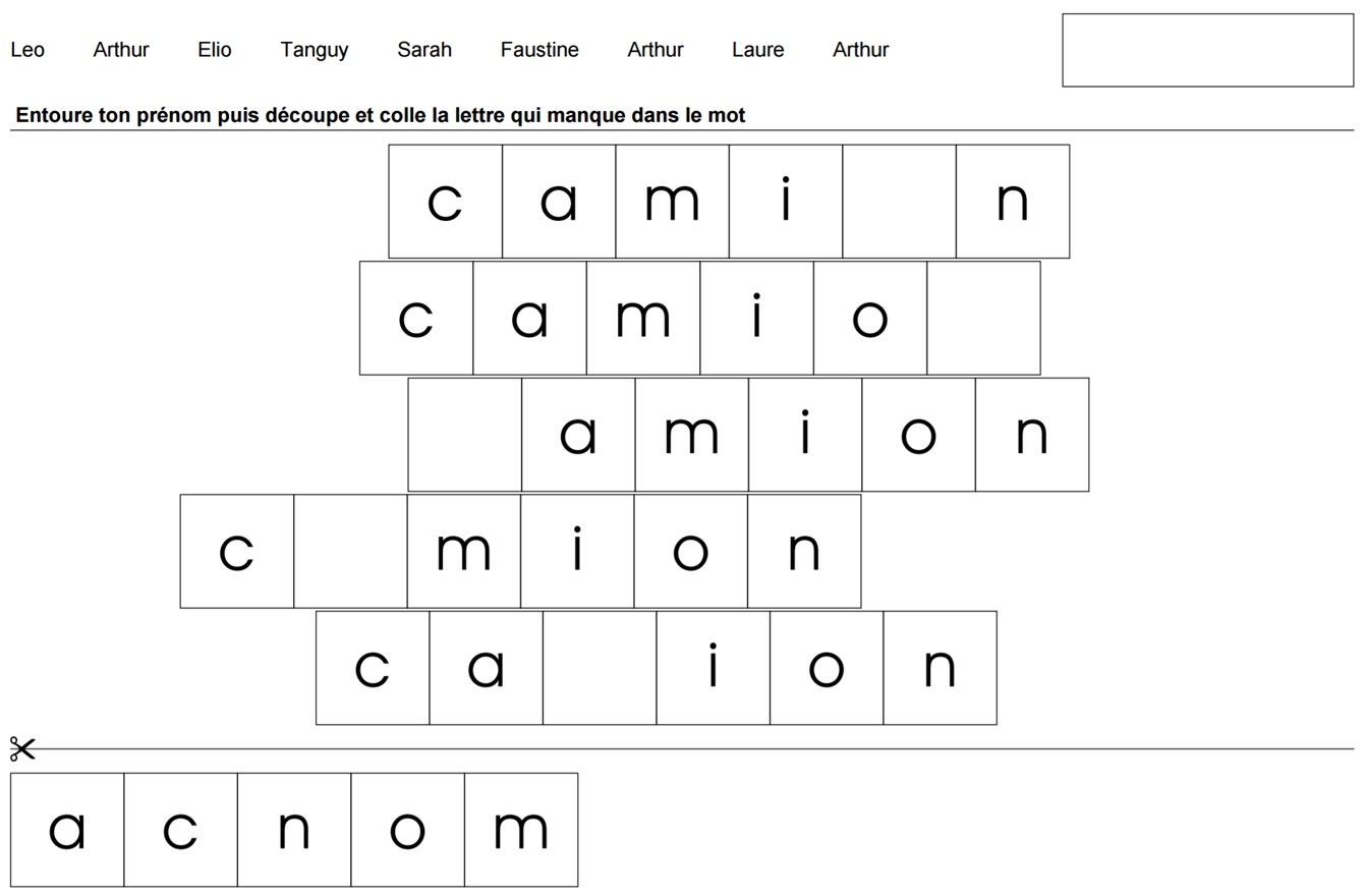 Imprimez des fiches d'activité pour vos élèves. L'en-tête de chaque fiche est personnalisable et vous permet de gérer des options telles que le prénom de l'élève à qui est destinée la fiche, la date, la notation, le domaine et la compétence liés à l'activité... Les fiches avec une * ne disposent pas des fonctions de sauvegarde ni de l'accès à la banque d'images.